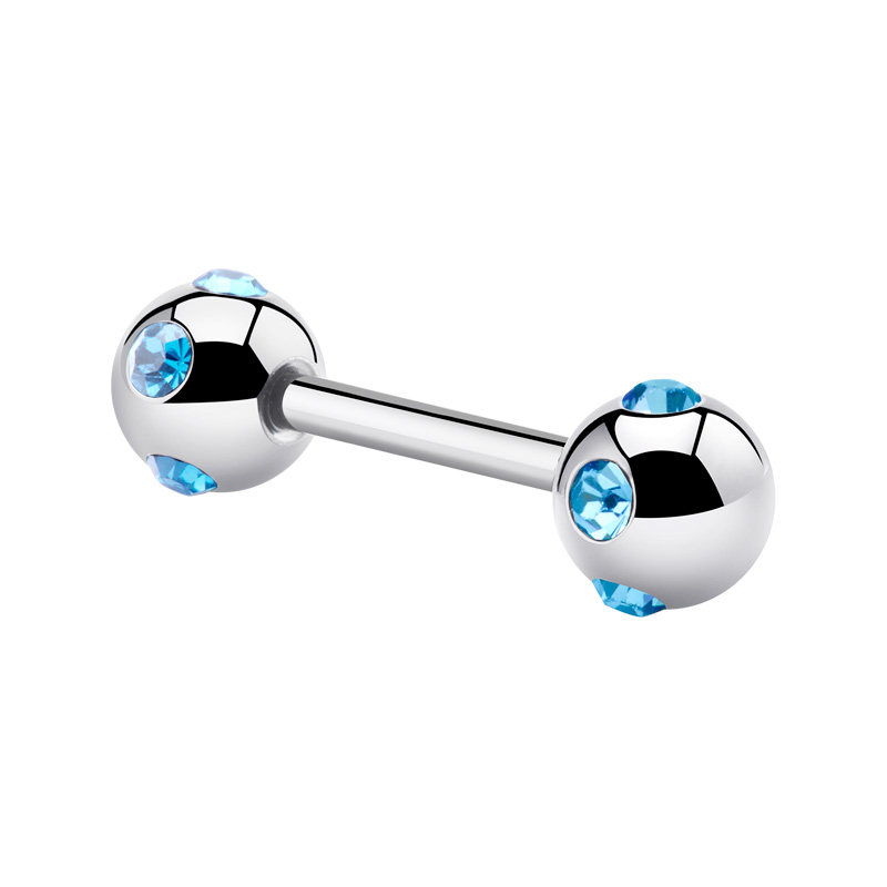 We can deliver it in the gauges of 1.2 mm and 1.6 mm. The lengths vary from 4 mm to 50 mm. All the ball sizes from 3 mm to 6 mm are a perfect fit. Piercing with stones in many colours, for example Aquamarine or Light Siam. This is just a fantastic product! Order right now!